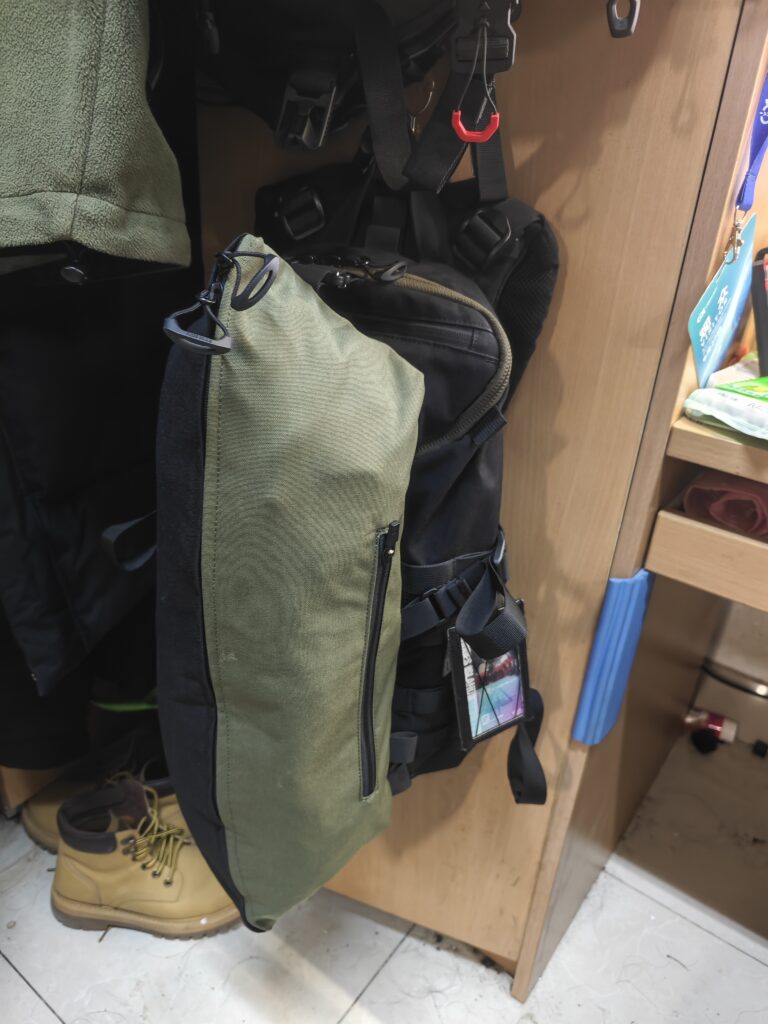 不出意外的话过两周的未来有你我就穿着这身过去了,首图的穿搭可以应对 5°C 左右天气,里面再穿件保暖内衣应该扛得住上海的冬季?不过我更愁的是北京这边学校到车站的那点路,要是下个雪感觉真得寄路上,想准备件防寒内搭/外穿衣物又不好携带(下图,鼓大包的提丰刚好塞下一件蛙耳的加绒夹克,做内搭应该也还行)。